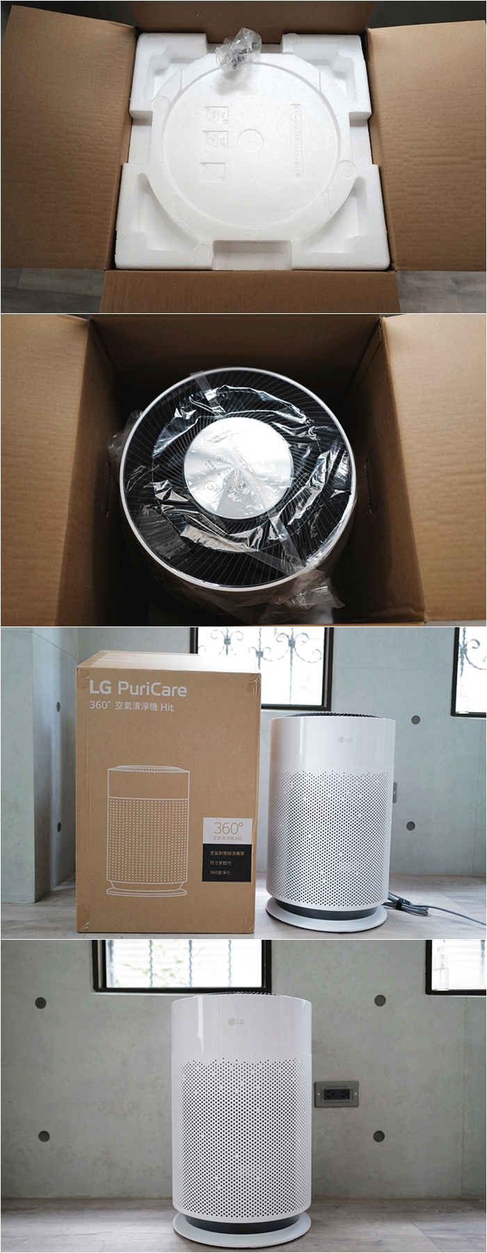 同樣步驟開香跟大家分享一下,LG目前的空氣清淨機幾乎都是圓柱形的,主打的是360度無死角的進氣口,這一台超淨化大白空氣清淨機-Hit同樣也是維持一次的造型,在功能上跟重量上也做了一些改變,更迎合目前主流需求市場。
