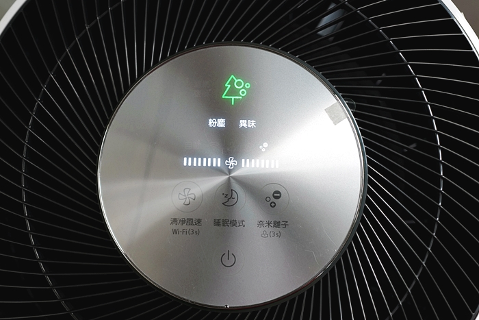 | 因為超淨化大白空氣清淨機-Hit沒有抬頭風扇,所以觸控按鍵只有三個,淺顯易懂也不會太複雜,主要是風量調整跟睡眠模式,還有奈米離子產生器功能。 |