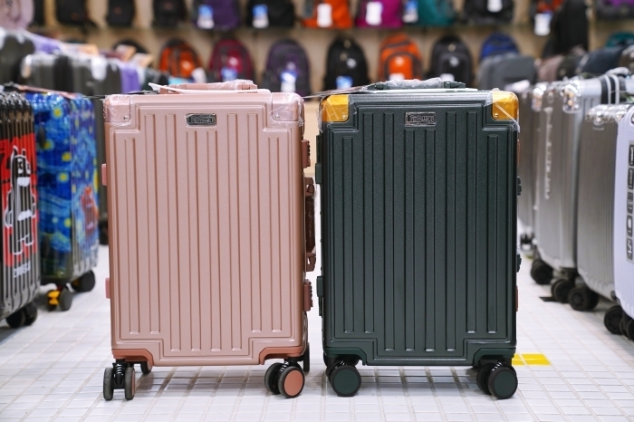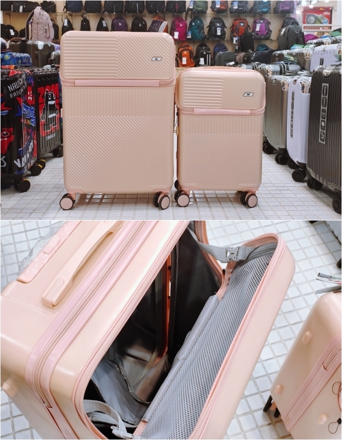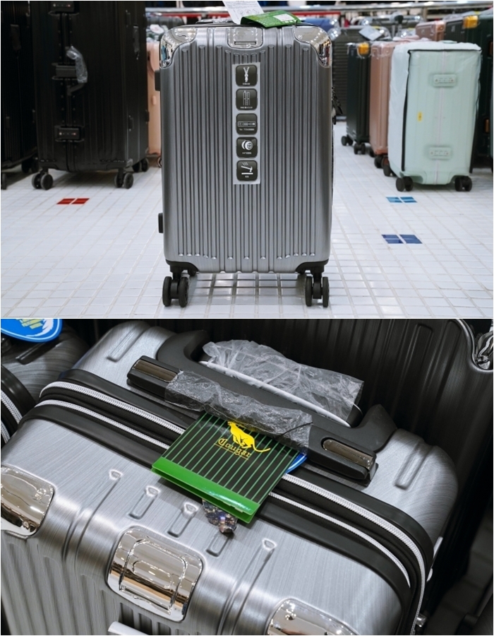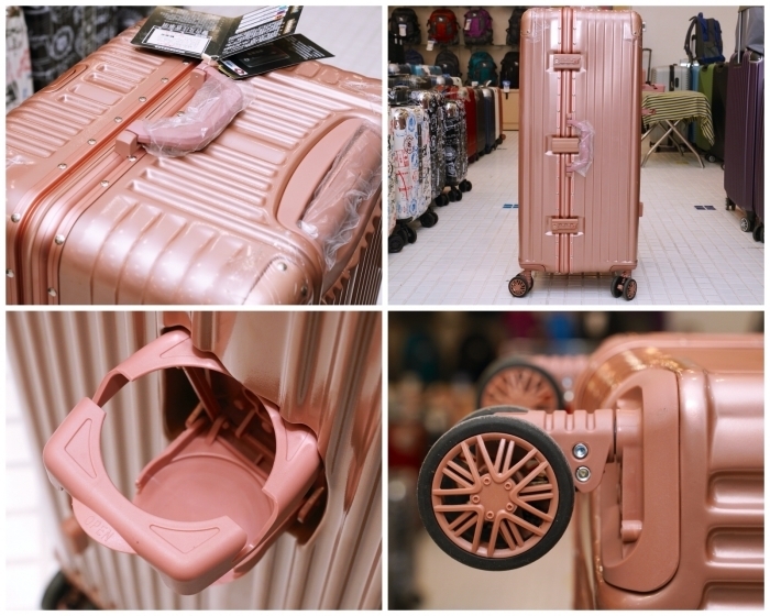近期超流行的運動鋁框避震旅行箱又稱「胖胖箱」,推出的象牙白、玫瑰金、黑金三種顏色容易讓人陷入選擇障礙。PC+ABS材質表面是霧面磨砂板,硬度高、耐撞,不容易破箱,行李箱上方的四個角都設有防撞護角,行李箱一側設計隱藏式掛物拉勾,另一側設計置杯架都實用。