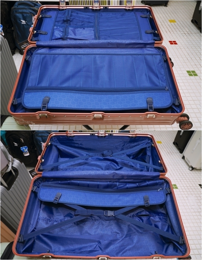 | Leadming夢幻之星鋁框行李箱是走美學風格的鋁框行李箱,鋁框看起來就是美,但是本身的行李箱就會重了一些,雙扣設計搭配海關密碼鎖更安全,後方有飲料置杯架,避震輪,內裝則是單邊拉鍊封布,外層也有一層分隔袋,另一邊則是X彈性吊帶。 |