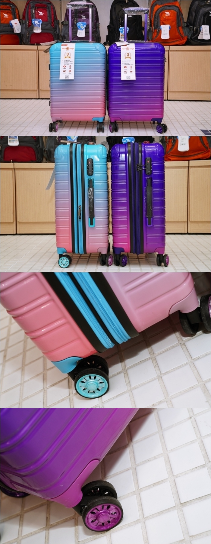 | 陽光橘子行李箱推出兩款新色:幻采二代棉花糖、幻采二代極光,可擴充拉鍊,行李箱材質為PC+ABS,這款彩色漸層行李箱除了色彩漸層超美以外,另外萬向輪也同樣是同色系噴漆,搭配可擴充雙邊拉鍊及海關密碼鎖,內裝的部分則是單邊拉鍊密封式內部,還有夾鏈分隔曾,另一邊則是X型扣環。 |