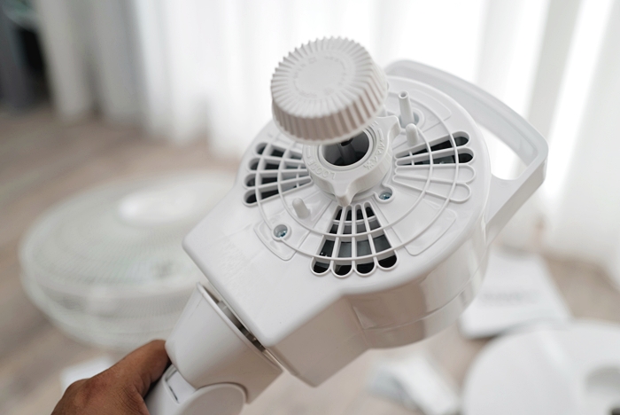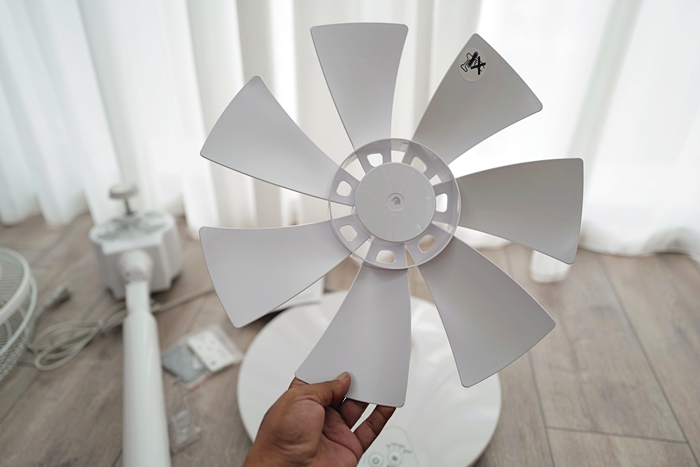 | 組裝大概不用三分鐘就可以組裝完畢,超級簡單,且電風扇外蓋組裝上去比起一般的電風扇也簡單許多。 |