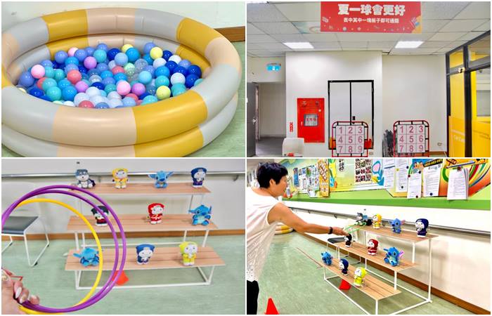 有球池、套圈圈、丟棒球三種關卡,除了球池之外,其他的大人也可以一起玩唷!