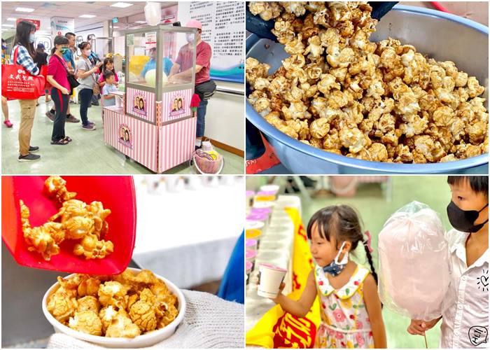 | 現場民眾都很踴躍參加,因為可以兌換爆米花跟棉花糖,這兩款人氣超夯,而且現場現做,空氣裡瀰漫的甜甜的氣味,直接夜市搬進活動裡,好吃好玩都在深愛築夢創意市集。 |