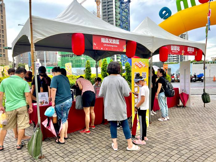 | 贈品兌換區,抽獎券、打卡禮、滿額禮兌換區通通在這裡,民眾很踴躍參加。 |