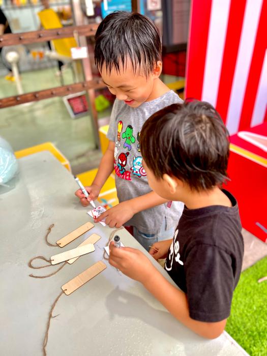 | 自己的卡片自己掛上,現場真的有很多好玩的活動,暑假帶孩子來玩樂,互動體驗不無聊。 |