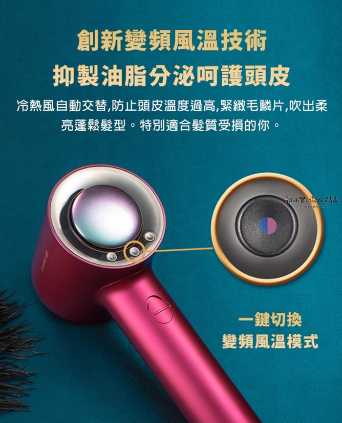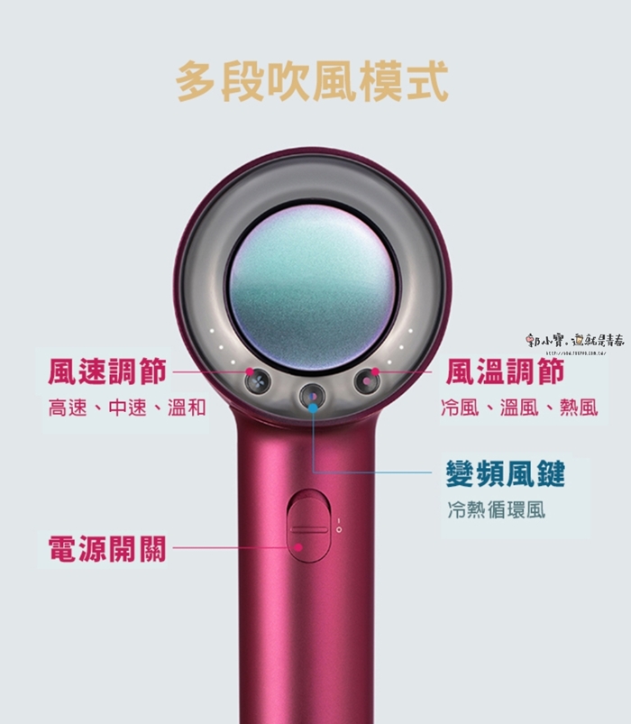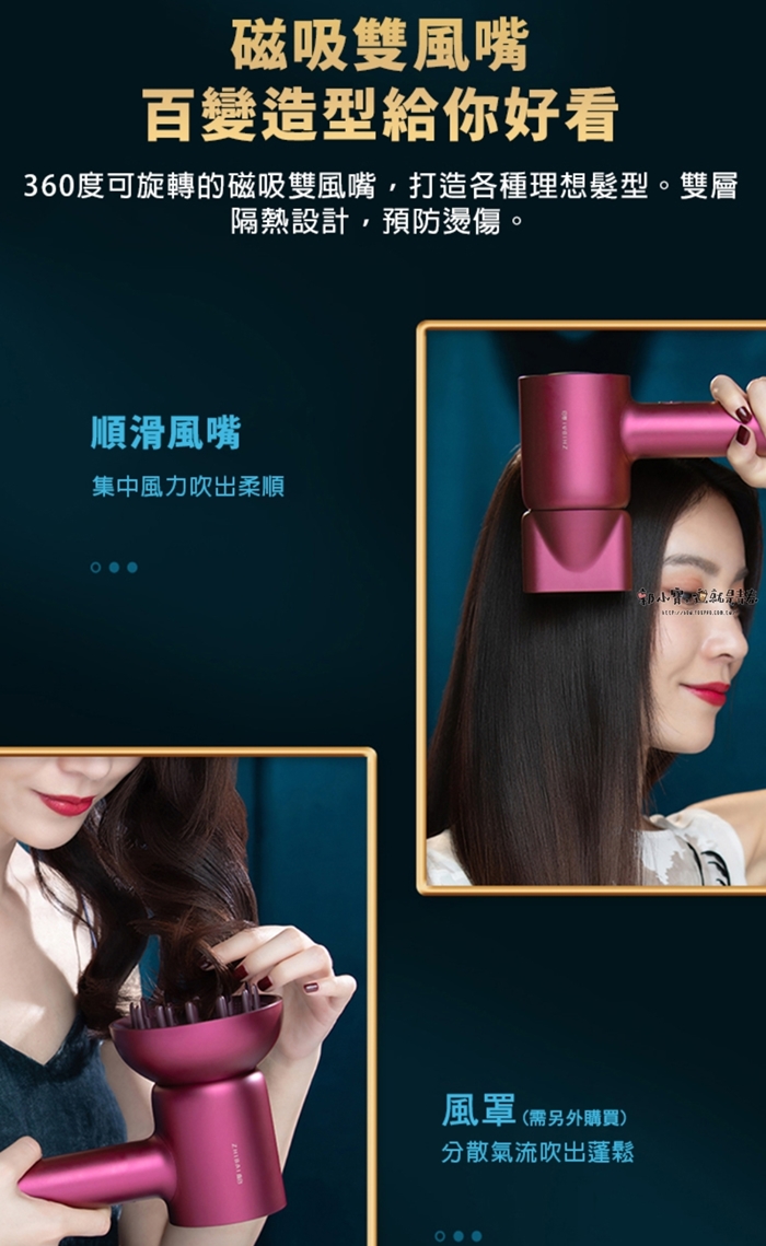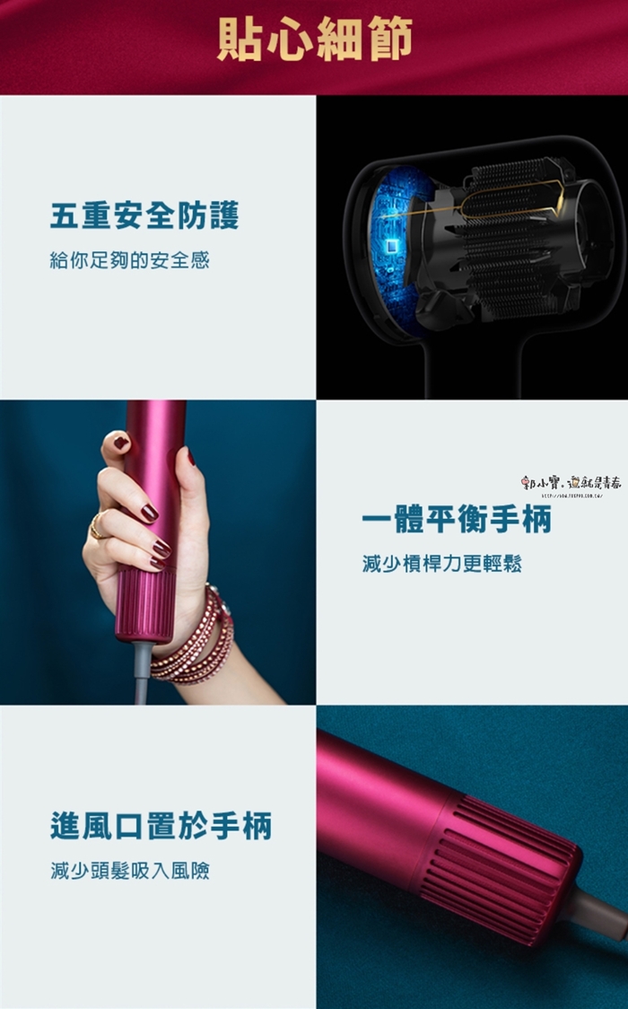 | 一整隻看起來就超漂亮的,不用5000元的價格可以入手比戴森吹風機媲美的吹風機真的CP值破表,且酒紅色超級討喜。 |