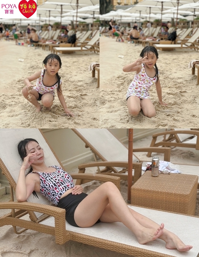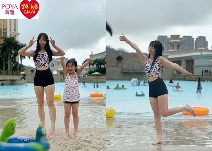 | 因為我們去澳門的幾天正好是天氣不穩定,早上大太陽,午後有時候會有點雷陣雨,出發前查了天氣候就在寶雅購買了速乾且較保暖的材質,老婆跟女兒都是挑兩件式泳裝。 |