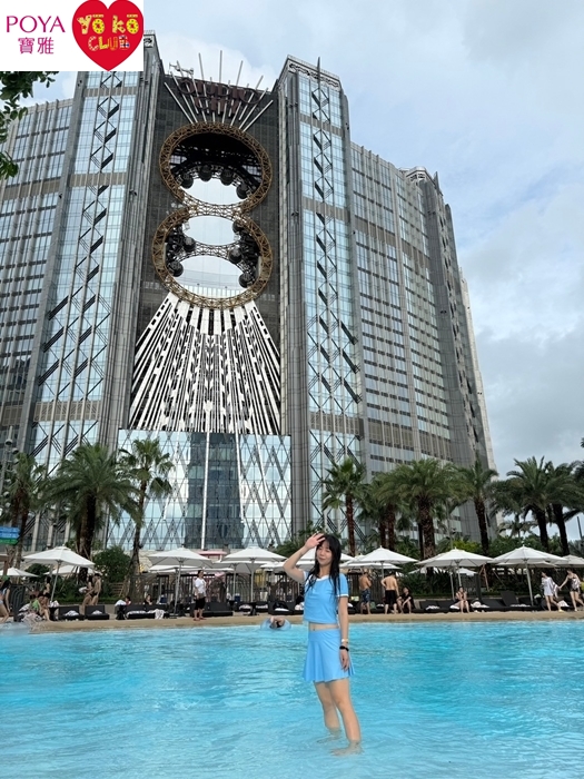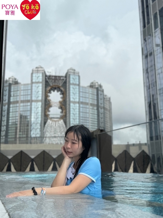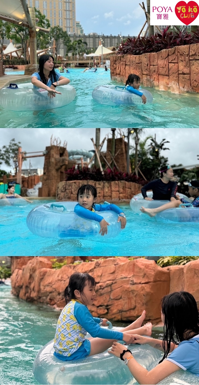 | 最後澳門一定要造訪的就是新濠天地的水上樂園,因為新濠的水上樂園設施較刺激,所以太妃跟女兒挑的都是比較能保護自己的兩件式,尤其高空划水道真的很容易因為水流的衝力,滑道底下的時候比基尼多都不翼而飛XD |