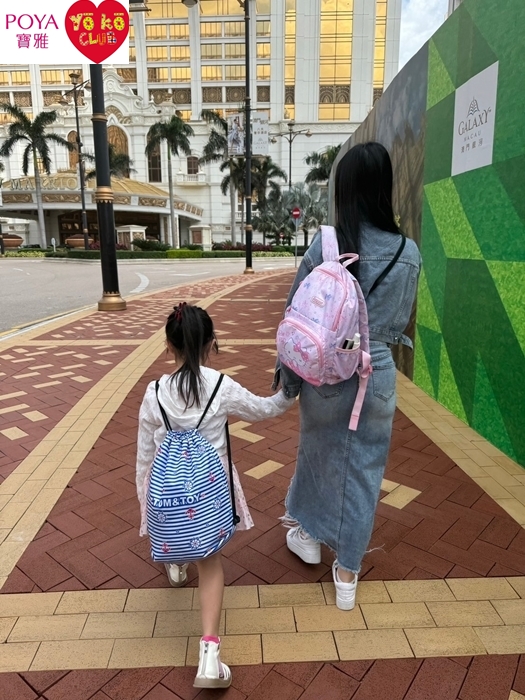 | 連防水背包都是在寶雅門市內直接購買超方便,來澳門是因為女兒堅持要來水上樂園玩,所以一家大小全部的泳裝都交給她背了XD |