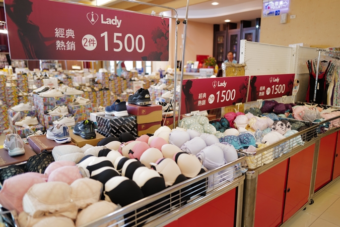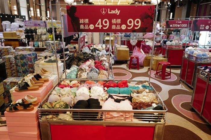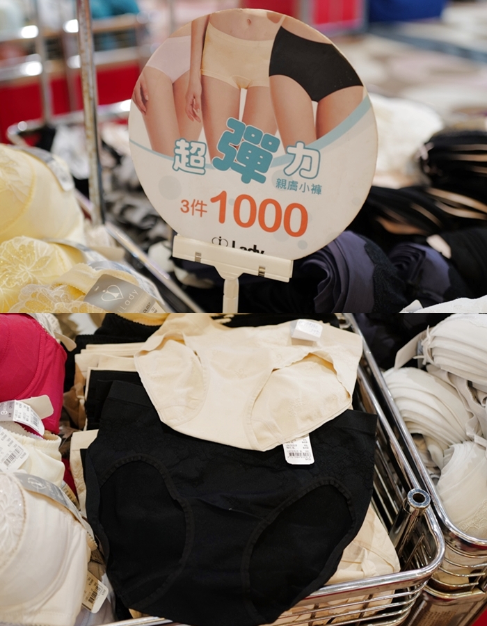 | 這樣的價格超值到不入手對不起自己,一整排的花車真的不誇張,款式真的超多備貨超齊全,這一區的內衣大多是零碼內衣居多,都是很好看的款式,很適合喜歡挖寶的女性朋友,這價位真的很划算,買多也不傷荷包。