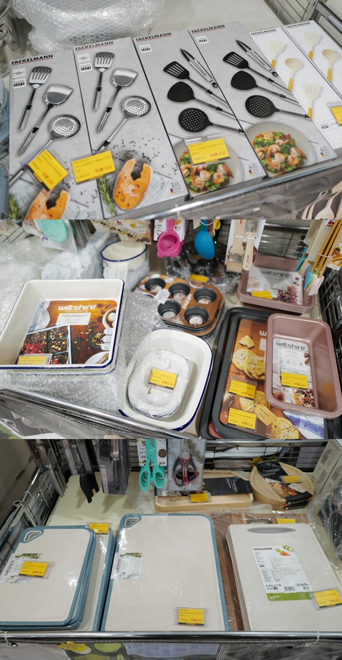 | 各式各樣的廚房用品應有盡有,這個要是我家太妃一起來拍照的話,基本上就會開始掃貨了,除了有販售家庭煮飯會用的鍋碗瓢盆以外,還有很多做烘焙甜點會需要的小工具,這邊也都有販售,我老婆每次也很喜歡逛烘焙用品的特賣會!! |
