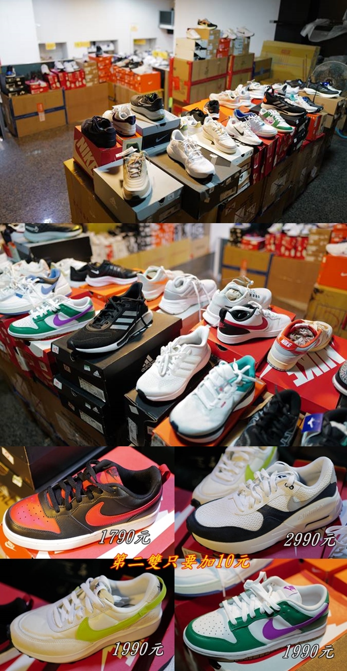 | 這一區大多都是零碼鞋款,老闆直接大回饋,每一雙鞋款幾乎都是打折再打折,特價再特價,直接放上這一區的四雙熱門鞋款的價位,第二雙只要再加10元,等於耐吉球鞋平均一雙只要千元就可以帶回家。 |