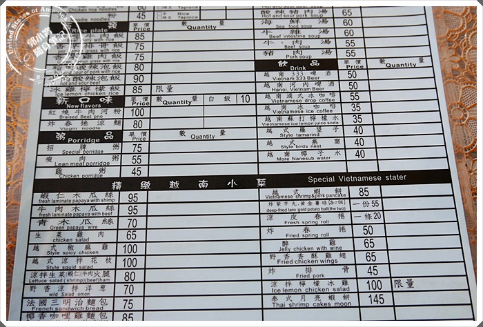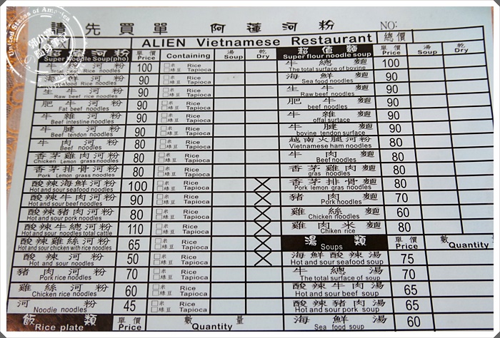 | 阿蓮河粉的特色就是他密密麻麻的供應餐點實在是種類超級多,寶妹如果只拍成一張照片的畫,上面的字根本會比螞蟻還要小XDDD上半部的點餐單剛好都是主食類~有河粉以及麵食 |