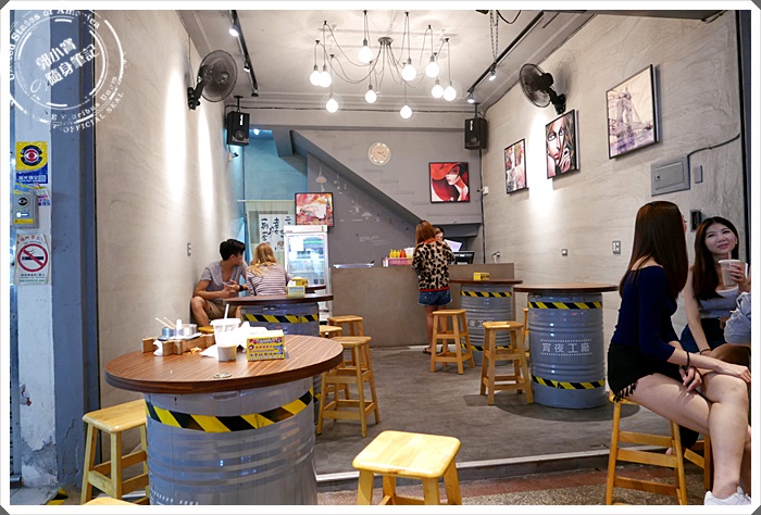 | 使用鐵桶當作桌面,牆上上了水泥粉光所呈現的灰色中性調,在配上大盞的工業吊燈,雖然是高腳椅但跟桌面的高度配合的挺好,其實還滿耐坐的,會讓人酒後或是宵夜聚會想賴在這兒聊天。這地點也實在太方便了,旁邊就是夜店酒店夜場,看來地點選擇還是很重要阿 |