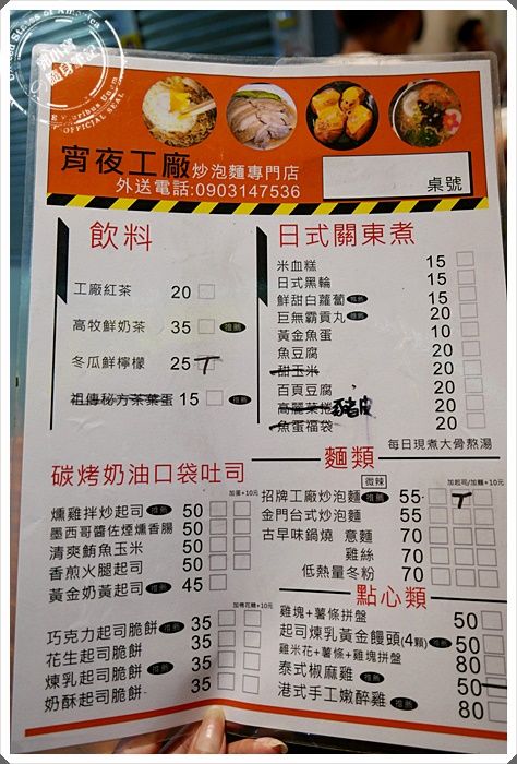 | 寶妹那天晚上喝了點小酒後就餓了,不過就是在臉書上詢問現在有什麼宵夜推薦?沒想到眾臉友回應熱烈,其中有兩個朋友竟然都同時推薦了宵夜工廠的炒泡麵,沒錯。這推薦簡直深得我心,喝了小酒過後就是想吃鹹食,其實不太會想吃吐司蛋餅類的,炒泡麵完全引起了我的興趣,主要是離寶妹也不遠,立刻跟朋友來去朝聖。 |