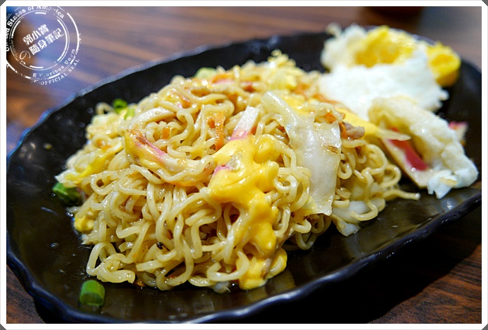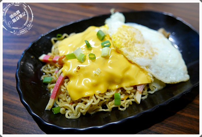 | 兩個人來吃都點了一樣的東西,台式炒泡麵$55在外加起士片$10,上桌的時候還不錯,有香味,起士片也讓整份炒泡麵看起來豐盛許多,旁邊還有附一顆荷包蛋,但蛋應該是事先煎好的有些涼,不過有半熟的程度唷~ |