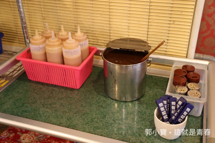 | 小餐檯有碗筷是要自取的,最主要還有它們的豆乳醬跟豆瓣醬。 |