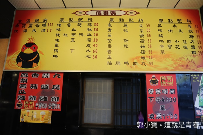 | 因為工作的關係來到太平,其實也沒有特別找尋太平的美食小吃,加上冬天的腳步越來越近,所以路上選擇了一間薑母鴨,招牌看起來有點可愛,Q版的紅面番鴨還滿吸引我的,加上店名帝寶食補感覺還滿霸氣的XD