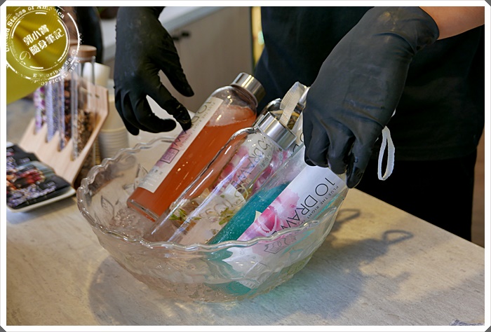 | 種類竟然還供應了不少選擇,絕對不是只有玫瑰氣泡飲這麼簡單,比較起剛開幕的網路文章,似乎口味又提供了更多樣了~不錯不錯寶妹喜歡有研發精神的店家,這麼有實驗精神難怪取名加做食艷室XDD,整體價格其實沒有想像中的昂貴,因為每一個獨創飲料都是提供玻璃瓶身外帶給客人的,根本沒有超過一百元其實是相當的超值。 |