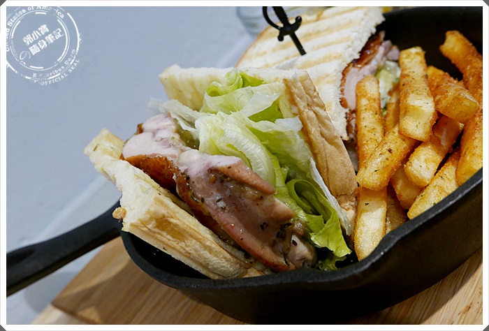 | 東西當然不能只有好看而已,好吃也是很重要的。厚厚的雞腿排加上漂亮的切面怎麼能讓人不動心?帕里尼薄脆又微酥微酥的口感會想要一口接一口地繼續吃下去....就連附餐薯條的份量也不少呢! |