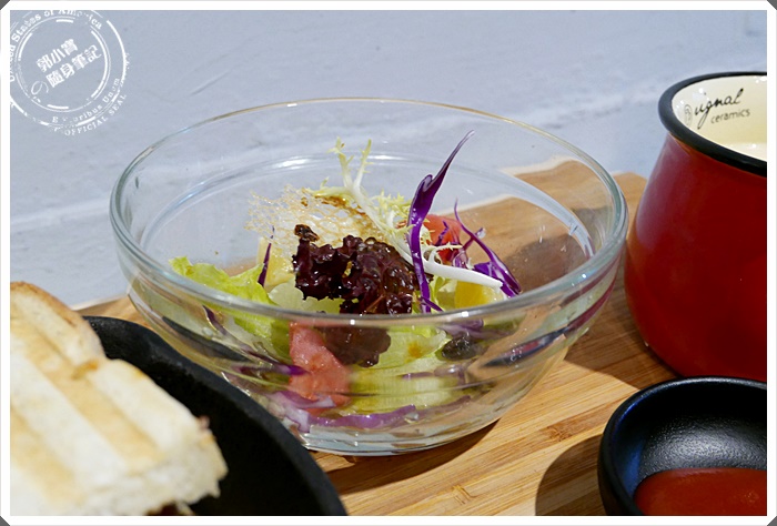 | 因為進來的時候一度客滿,老闆娘說人手不夠二樓還無法提供座位,所以老闆娘還請我們吃了自家製的優格,完全不甜,又使用了自家手工製的果醬,連招待小點都還擺盤端出來,店家真的很有心,標準的噓寒問暖關心到你心裡唷! |