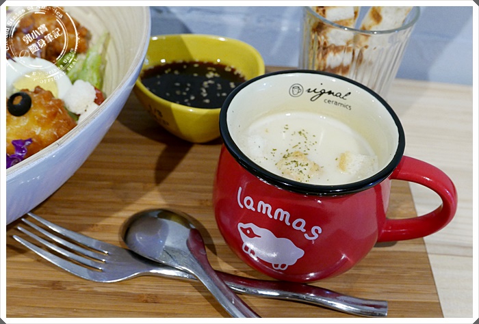 | 首先是超大杯湯品,奶油底的濃湯卻沒有便宜奶油的油耗味,滿滿鮮奶香,而且還非常的燙口。要小心連杯子都很燙唷~~冬天來了,濃湯就是要喝燙的呀! |