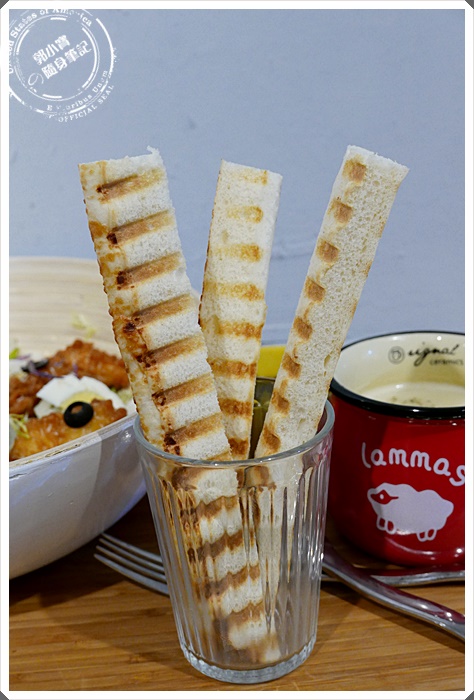 | 也別擔心只吃沙拉沒有飽足感,整份套餐還提供了三隻超高聳的帕里尼吐司棒,說真的寶妹真心推薦,這吐司棒好酥脆唷~~平時並沒有特別喜歡帕里尼的吐司類餐點,但這吐司棒真的口感好特別.... |