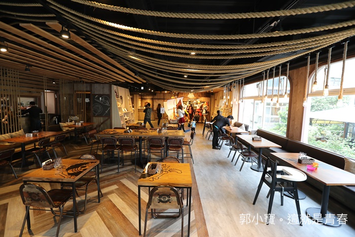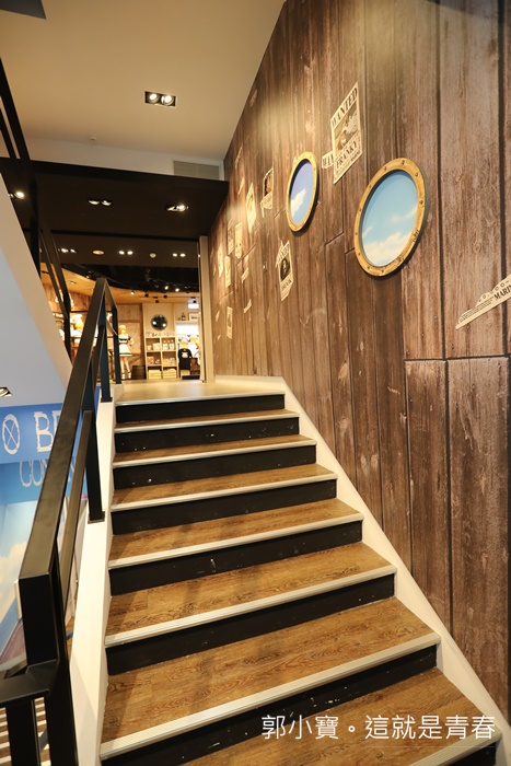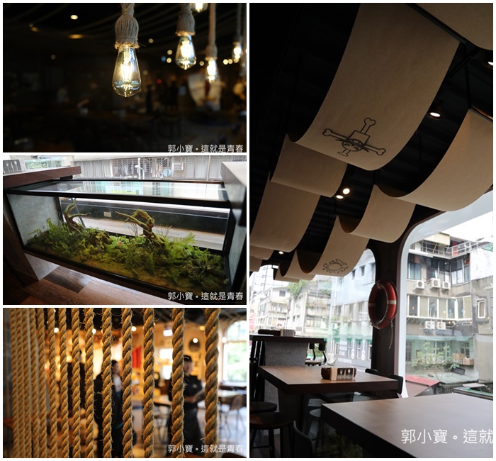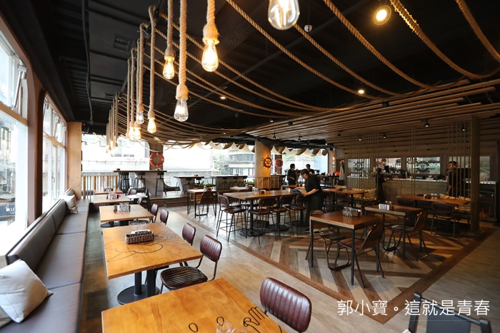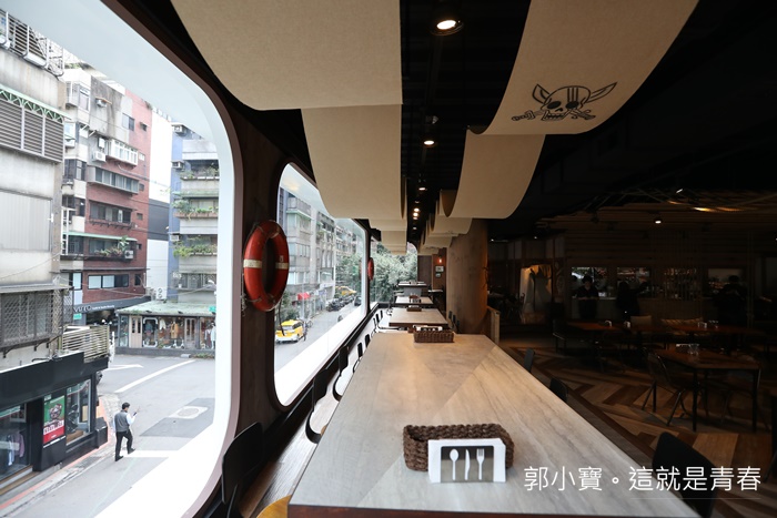 | 令我頗為驚訝的是二樓的空間打造的還不錯,透明的大玻璃窗有像在海上航行的船一般的大玻璃面,加上其他裝潢及天花板上的木板也有營造出船板的感覺及氛圍,最意外的是其實他們的桌椅之間並不會很擁擠,本來一直以為它們會設超多座位有多少錢就先撈多少錢,看來是真的有想要好好的經營下去XD |