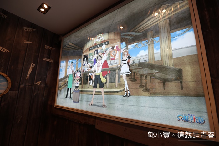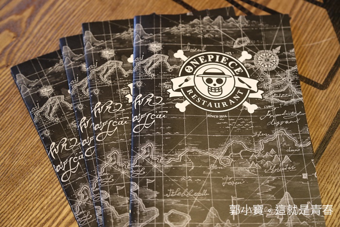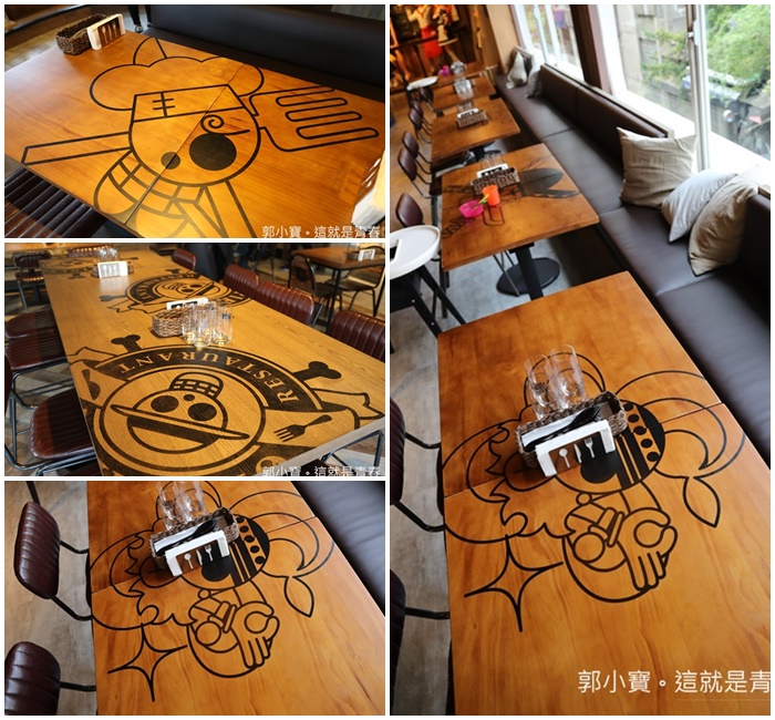 | 每張桌子都有海賊團的標誌,大部分漫畫裡面出現比較有代表性的海賊標誌都有出現,來這邊我滿建議多一點人一起來的,因為菜單一翻開真的每一種妳都想點來拍一下。 |