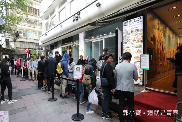 | 即使預約也是要排隊的,在每個時段還沒進場以前,其實餐廳早就把人數座位都固定好了,只是樓上的清潔跟準備工作都一定要完成才會放客人進場,確保每個客人都可以完全享受到航海王主題餐廳ONE PIECE Restaurant海外一號店的優質感。 |