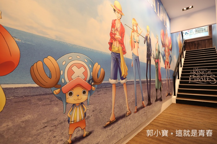 | 樓梯轉角大大的海報壁燈彷彿草帽一行人在歡迎大家登上他們的千陽號一般。 |
