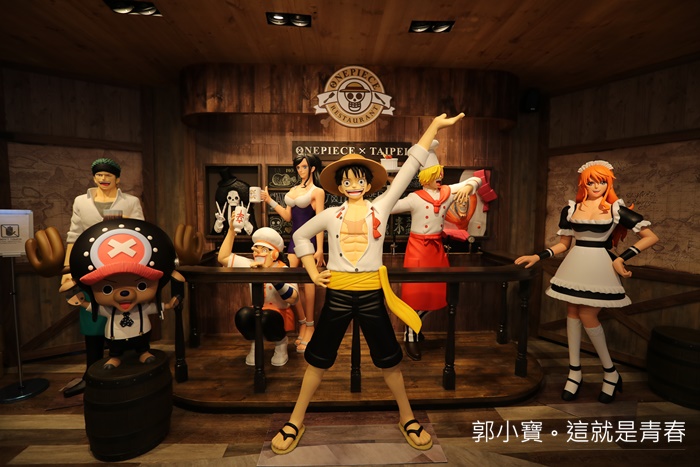 | 當然要朝聖的就是這些與真人一樣大小的大型公仔了,這些平常只有在日本國內航海王ONE PIECE相關類型的場地才能看到,這次因為是餐廳的關係,所以尾田老師設定的就是全體的餐廳服裝,或許你在日本很多地方都曾經跑過航海王的主題餐廳或是期間限定特展,但是台灣的這一套絕對是唯一的一套主題。 |