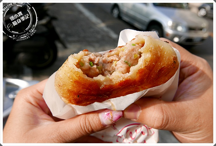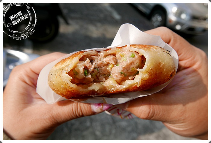 | 超新鮮的豬肉餡,通常這樣的餡餅都會很容易有一種豬肉癬的味道,寶妹其實不太吃豬肉就是很怕吃到那股味道阿,但道地蔥油餅的實在是好吃到不行,裏頭其實使用了肥瘦各半,重點是還吃的到肉塊,整體的口感根本也不輸外頭的一些賣餡餅的餐館唷! |