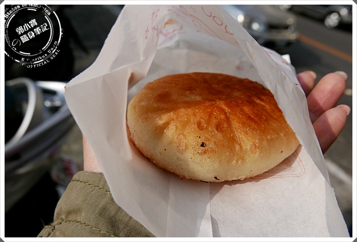 | 朋友還買了一顆豬肉餡餅,拿在手上的份量真的有點重耶 |