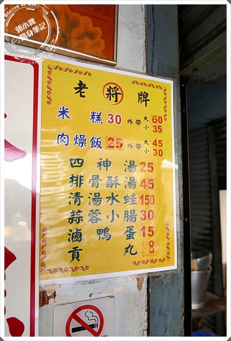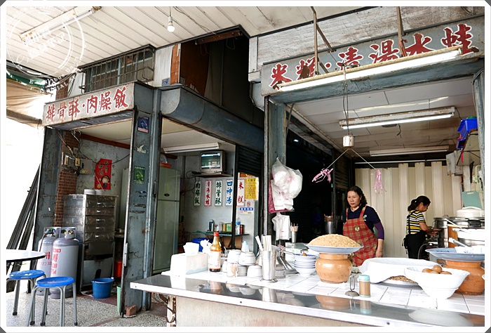 | 賣的東西其實很單純,就上面斗大的幾個紅字,米糕、排骨酥、清湯水蛙、肉燥飯。 |
