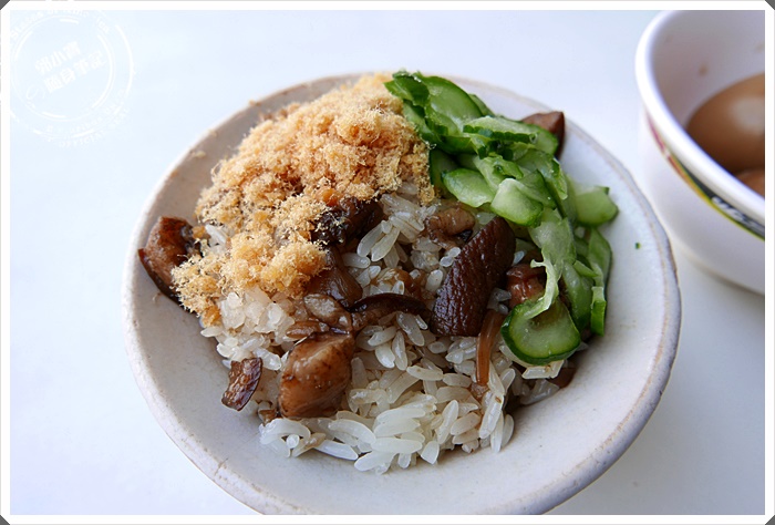| 有的朋友可能比較喜歡筒仔米糕的類型,但這樣的散米糕寶妹也很愛吃,阿將米糕的類型是很清爽的,加上去的肉燥清爽不油膩,淡淡的湯汁配上炊蒸剛剛好的糯米實在很讚,大中午來吃簡直就是愉悅,尤其我超愛阿將米糕配上清爽口口的魚鬆還有脆口滋味的小黃瓜,叫我吃個兩晚也是很正常的事~ |