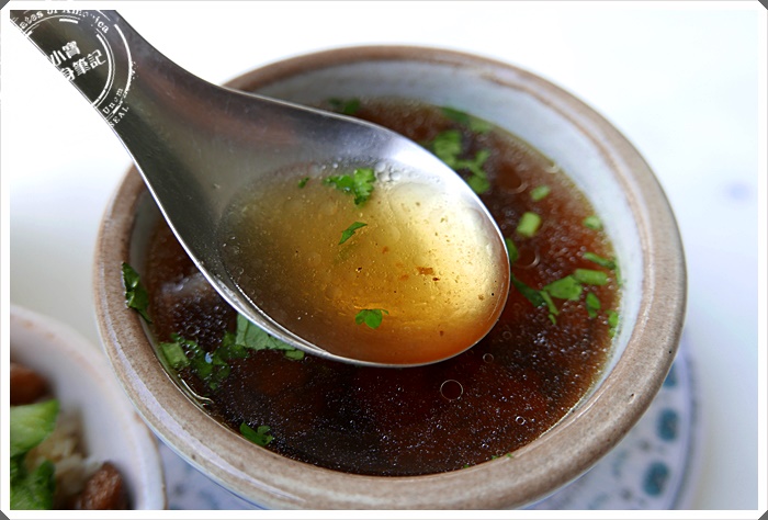 | 看看這乾淨的湯底,實在是太威了,可以再來一碗嗎?排骨酥湯非常清澈,不像別家的有點黑嚕嚕的湯底,我想除了湯底藥材之外,炸排骨酥的用油可能也是一大關鍵,清爽湯底但絕對不是清淡無味唷 |