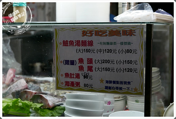 | 攤前放了許多今日漁獲,寶妹這陣子食慾不太好,正好吃吃鱸魚麵線清爽一下,有時候就是會想要吃這種清補身體的食物,可以讓腸胃都放鬆不少,就像住院生病的人也都是要喝魚湯,可以補元氣,又可以不刺激腸胃~~ |