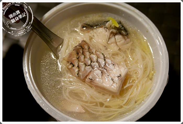 | 一整個小碗的份量撈起來大概只有這樣~哈!不過底下的鱸魚塊不少唷~大約有四五塊的鱸魚。 |