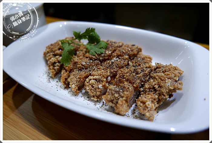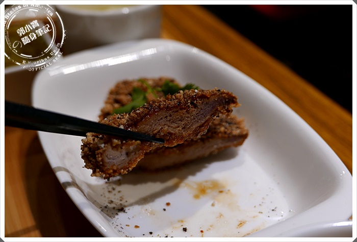 | 朋友W哥可也是個每天在家燒廚房的好手藝,他今天點的主餐是"不一樣豚排",其實就是非常古早味形式的炸排骨,但完完全全讓他十足驚豔的好吃,重口味的事先醃漬豬排讓炸過之後配上米飯非常適合,酥炸的外皮香脆又不油膩,外頭在來上一些現磨黑胡椒,也絕對是下飯的不二人選,W哥說這就是我們爸爸年代最流行的炸排骨飯形式阿~ |