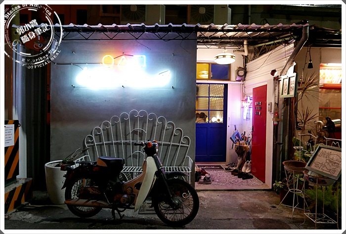 | 寶妹最近好喜歡這樣的店家,越是自己的風格我越愛,那天在網上蒐集美食名單才看到格友的介紹,怪異路線非純文青的風格店家實在是深深吸引我,帶著姊妹就來到這裡!超級隱密的小巷,藏身在市政府旁邊的巷弄,一開始我是被門口這個復古扇形鐵絲椅給吸引的,門口還有一台復古機車,招牌寶妹拍得不夠清楚,LOGO有著圈圈、三角形、正方形的幾何圖形組成,在配上標語One.Life as we know it~ |