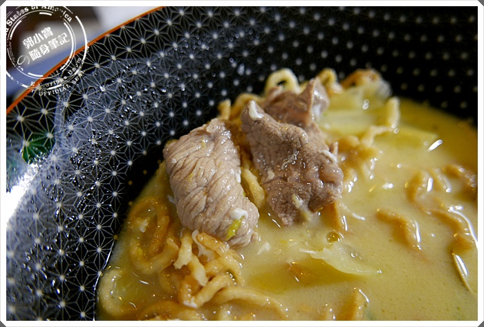 | 不使用一般的加工食品,裡面就是有提供相當大片的肉片以及高麗菜,另外湯頭是自己熬煮,相當有誠意,喝起來微微的像是豚骨拉麵的湯頭呢~ |