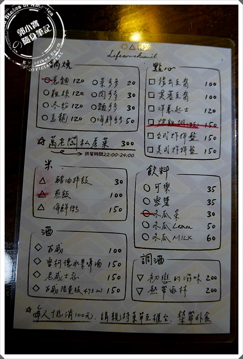 | 單子在櫃台旁,其實萬。鍋燒不只是鍋燒麵店,九點十點過後還會在將店內的燈光調暗,仔細看看菜單有不少的酒品選項,還可以點個小點,也是相當適合喜歡下班放鬆飲酒的趣味人來這裡。 |