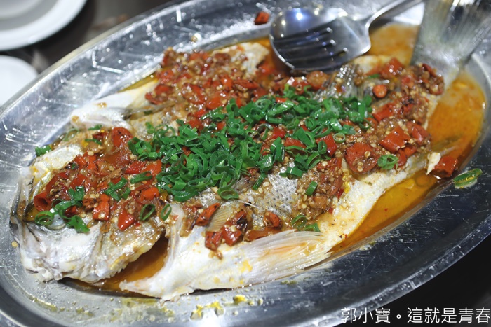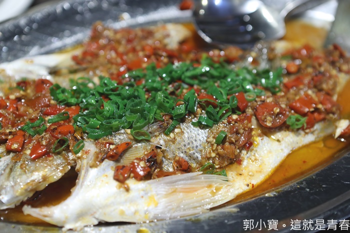 | 大宅門的剁椒魚是出自世界廚神陳偉強師傅的手藝,個人認為大宅門大部分的菜色看起來都很辣,但是其實一點都不會辣,主要要把麻辣的香氣提出,帶點辣氣提味,這邊的菜很多小朋友都敢吃,這次的聚餐就有兩個小朋友,一樣吃得很開心,魚肉細緻以外,那剁椒的香氣表露無遺,重點是真的一塊接著夾上一塊,停不下來! |