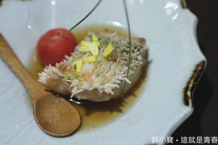 | 我個人覺得相當厲害的一道菜,馬頭魚通常我有看到都會點,沒想到大宅門以外脆內嫩的方式來表現馬頭魚頗具驚艷,魚鱗的部分先油炸,一口咬下魚鱗酥脆帶香,魚肉依然保持著水嫩度跟鮮甜。 |