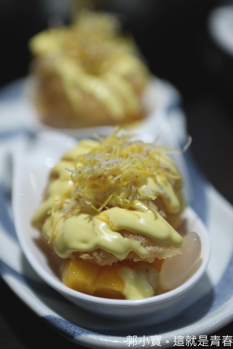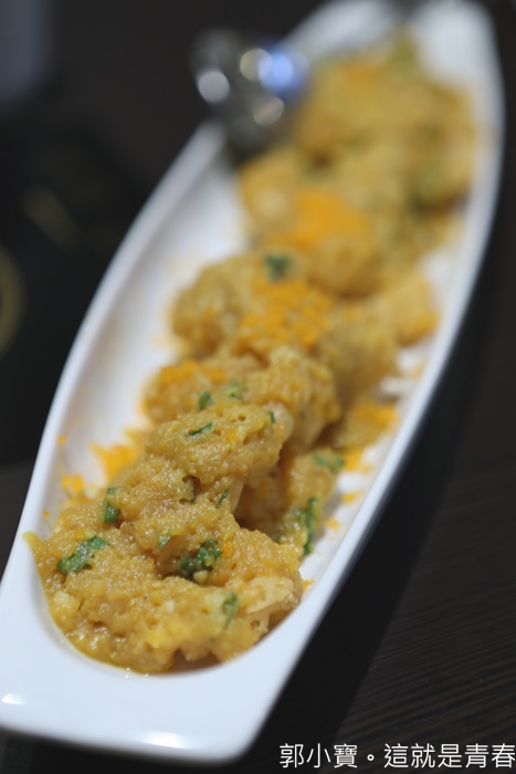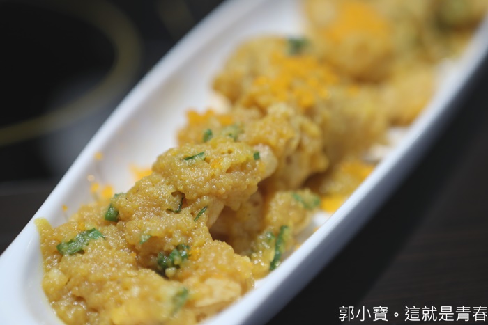| 高雄大宅門的其中一道招牌,我超愛它們家的金沙中卷,台灣大概只有他們家是做濕的金沙,中卷本身就相當的新鮮,吃起來彈牙可口,最厲害還是外層那濕滑香氣濃郁的金沙,流沙般的口感讓人真的無法控制的一口接著一口!!! |