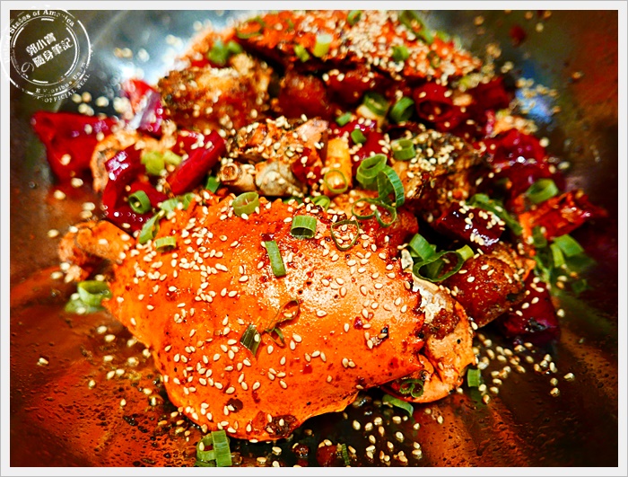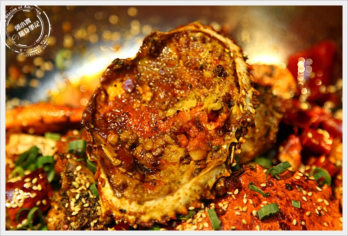 | 台北敦南店才有的乾鍋紅蟳,上來的香氣也是十足爆發,翻開紅蟳更是讓人口水直流,滿是蟹膏的乾鍋紅蟳吃起來甜度破表,一點都沒有搶走蟹膏的鮮美滋味,反而更添香辣的氣味,比起之前喜歡的過海香辣蟹還更勝一籌,好吃到令人流眼淚! |