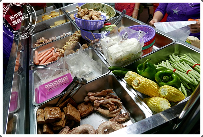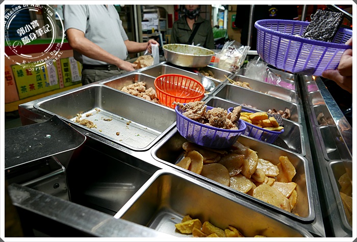 | 賣的東西其實一點也不特別,種類也不多,是超級傳統的鹹酥雞食材,基本的鹹酥雞肉、三角骨、魷魚、地瓜、米血黑輪、豆干熱狗蔬菜,大致上就只供應這幾樣就已經賣到嚇嚇叫了 |