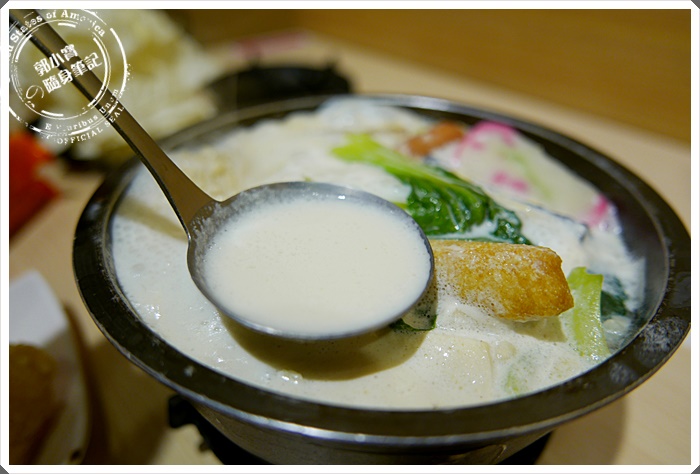 | 湯終於滾了,可以見到牛奶鍋的真面目了~~牛奶味很香濃,沒有加水的稀薄感,喝起來甚至有微微的豆漿香,對於奶味極度崇尚者超級適合,煮到後面沉澱物的狀態也很低,尤其放入高麗菜來增加湯底的甜味實在是很棒。 |